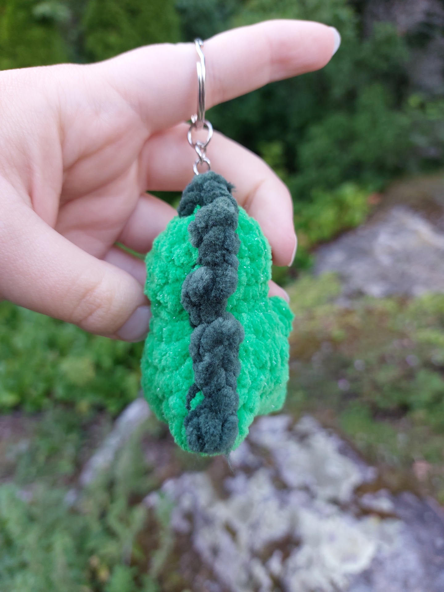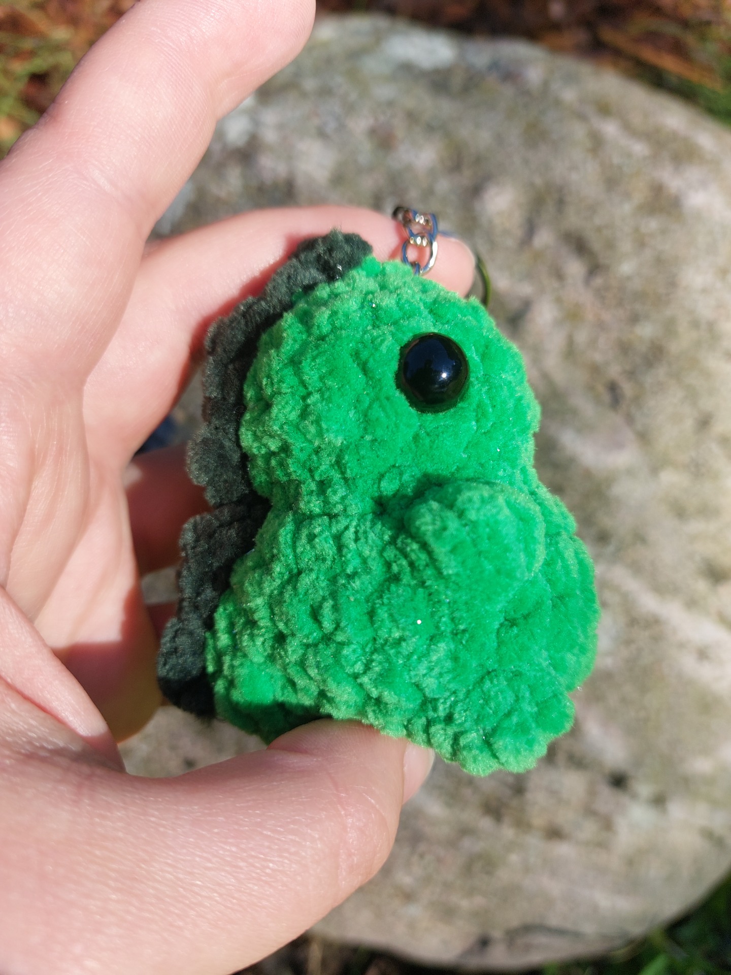 kimaltava vihreä dinosaurus avaimenperä koristamaan avaimia tai reppuun kaveriksi.
