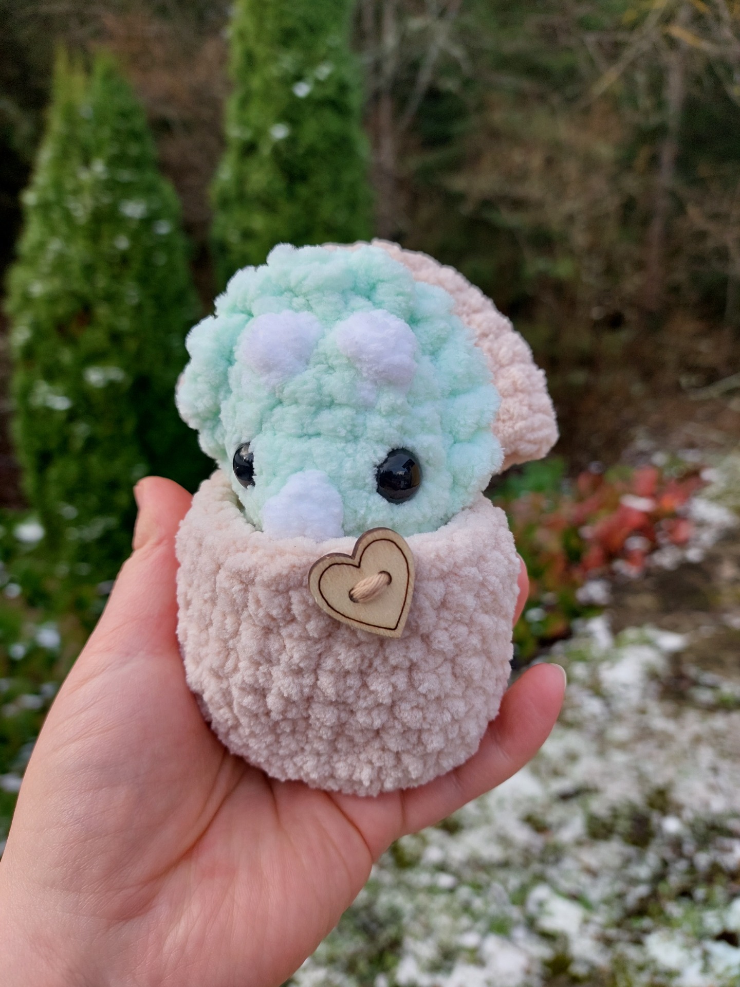 Pehmeä dinosaurus pehmolelu jonka voi laittaa munan sisälle ja ottaa pois.