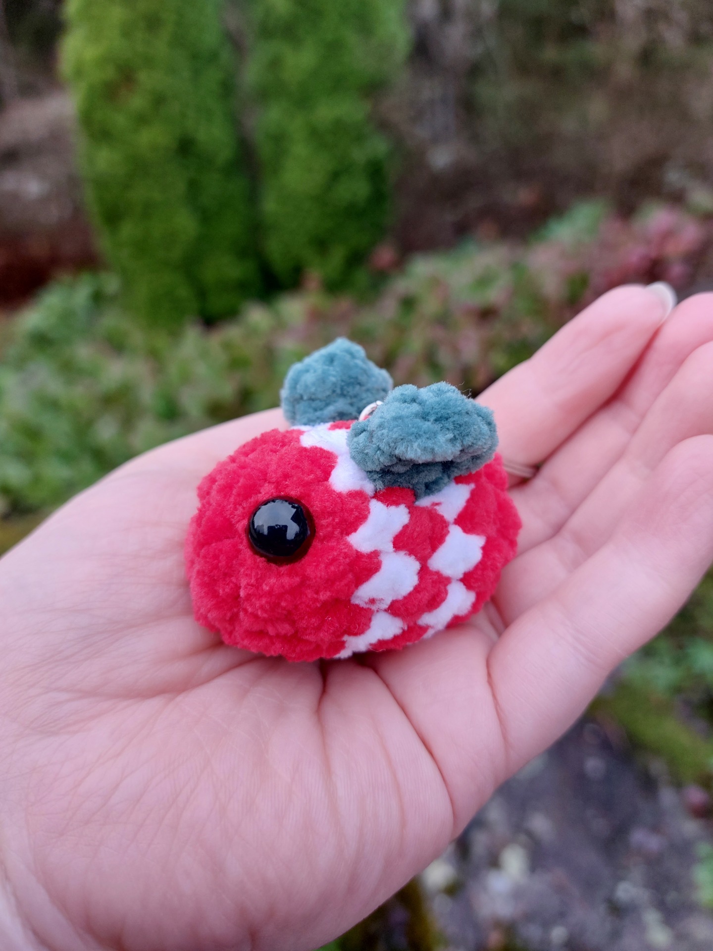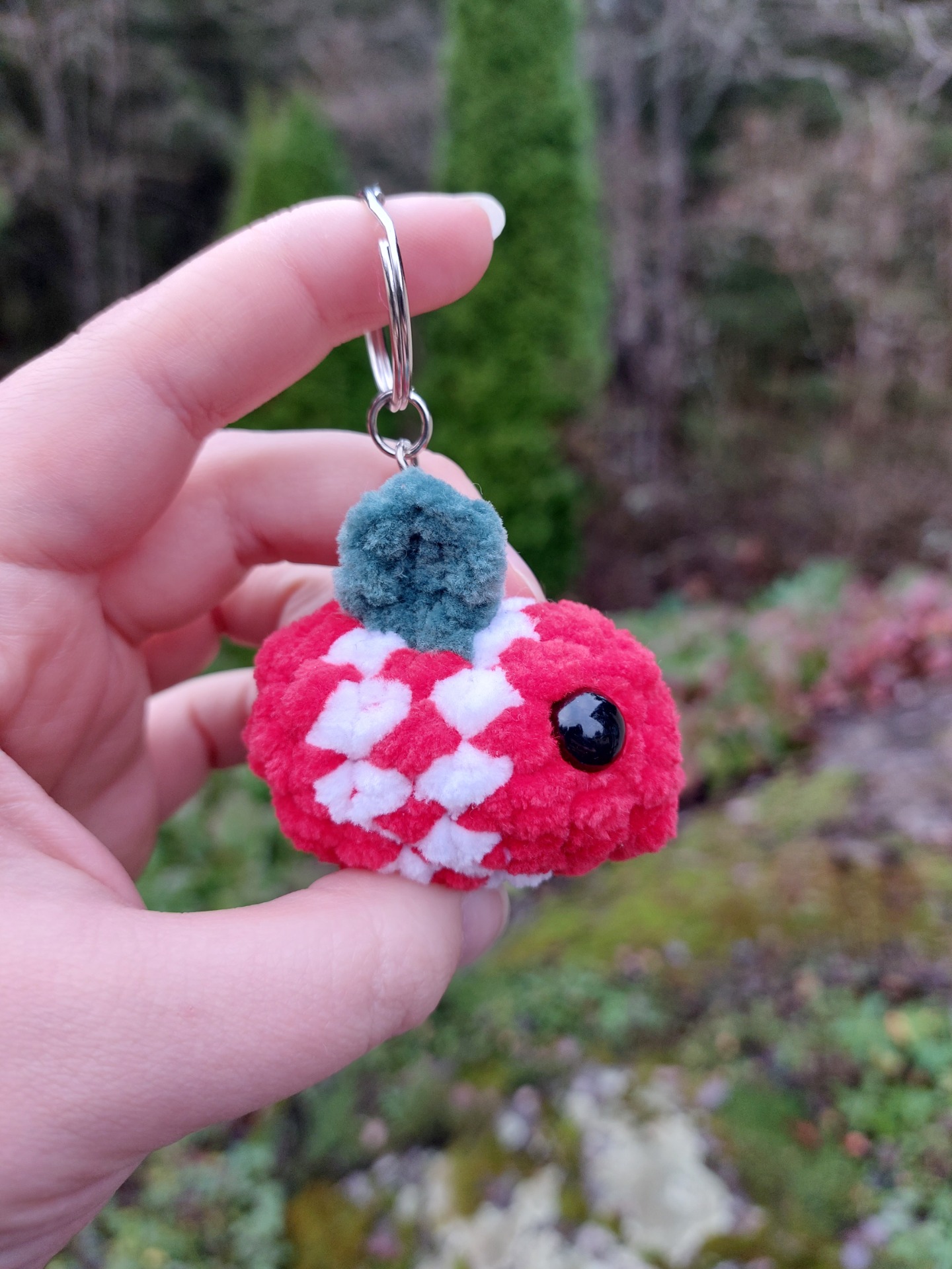 Ihanan pehmeä amppari avaimenperä koristamaan avaimia tai reppuun kaveriksi. Langalla on Oeko-tex sertifikaatti ja täytevanu soveltuu myös allergikoille.