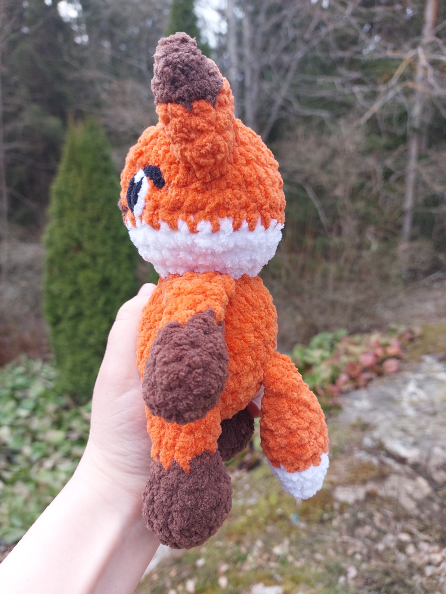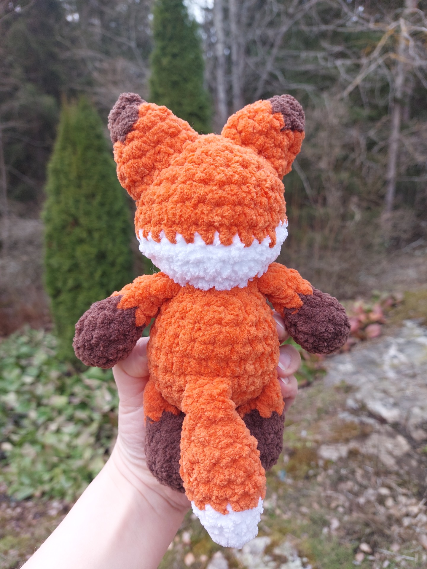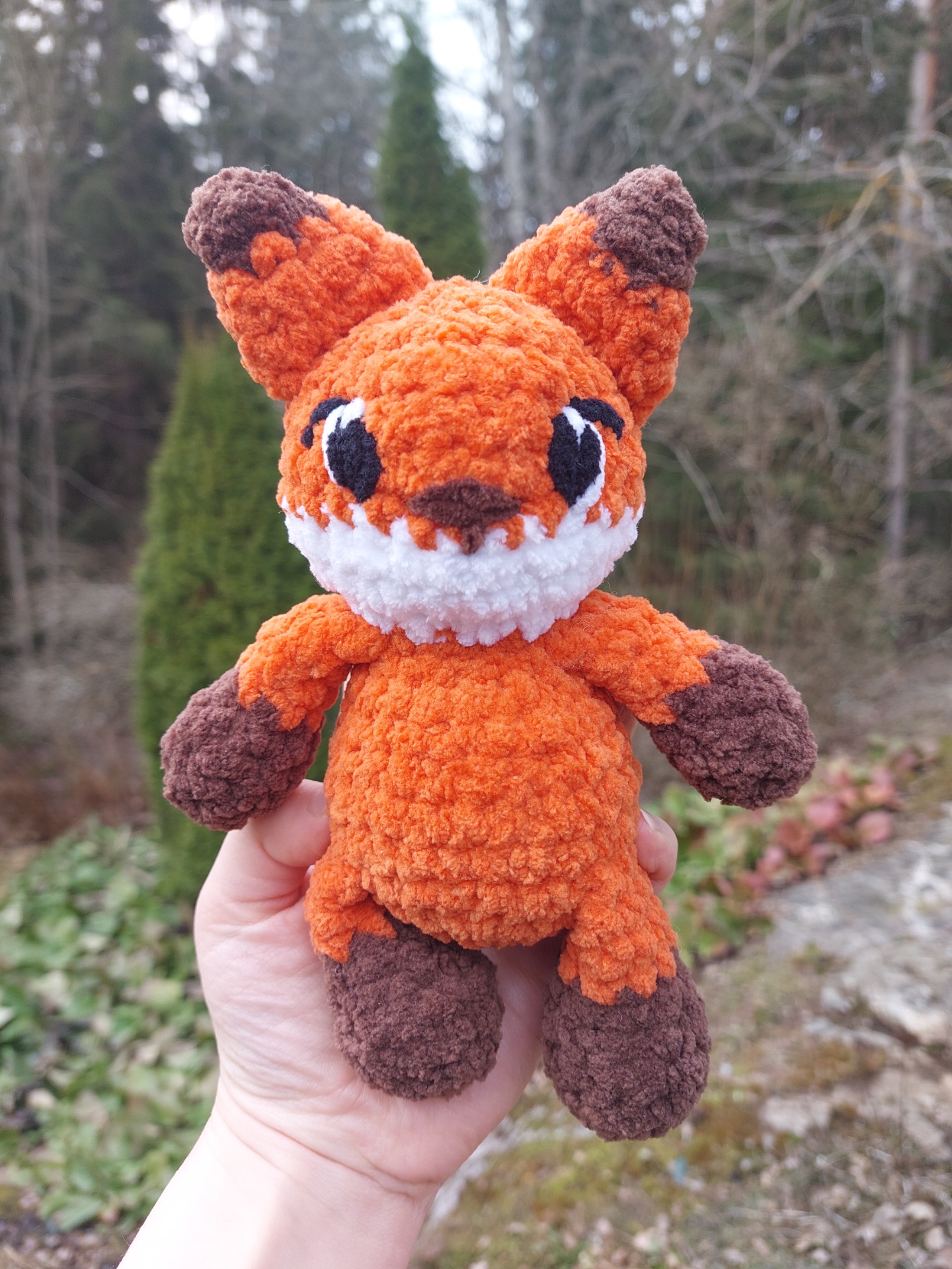 Oranssin värisen suloinen kettu pehmolelu vauvoille turvallisilla lankasilmillä. Langalla Oeko-tex sertifikaatti ja täytevanu soveltuu myös allergikoille.
