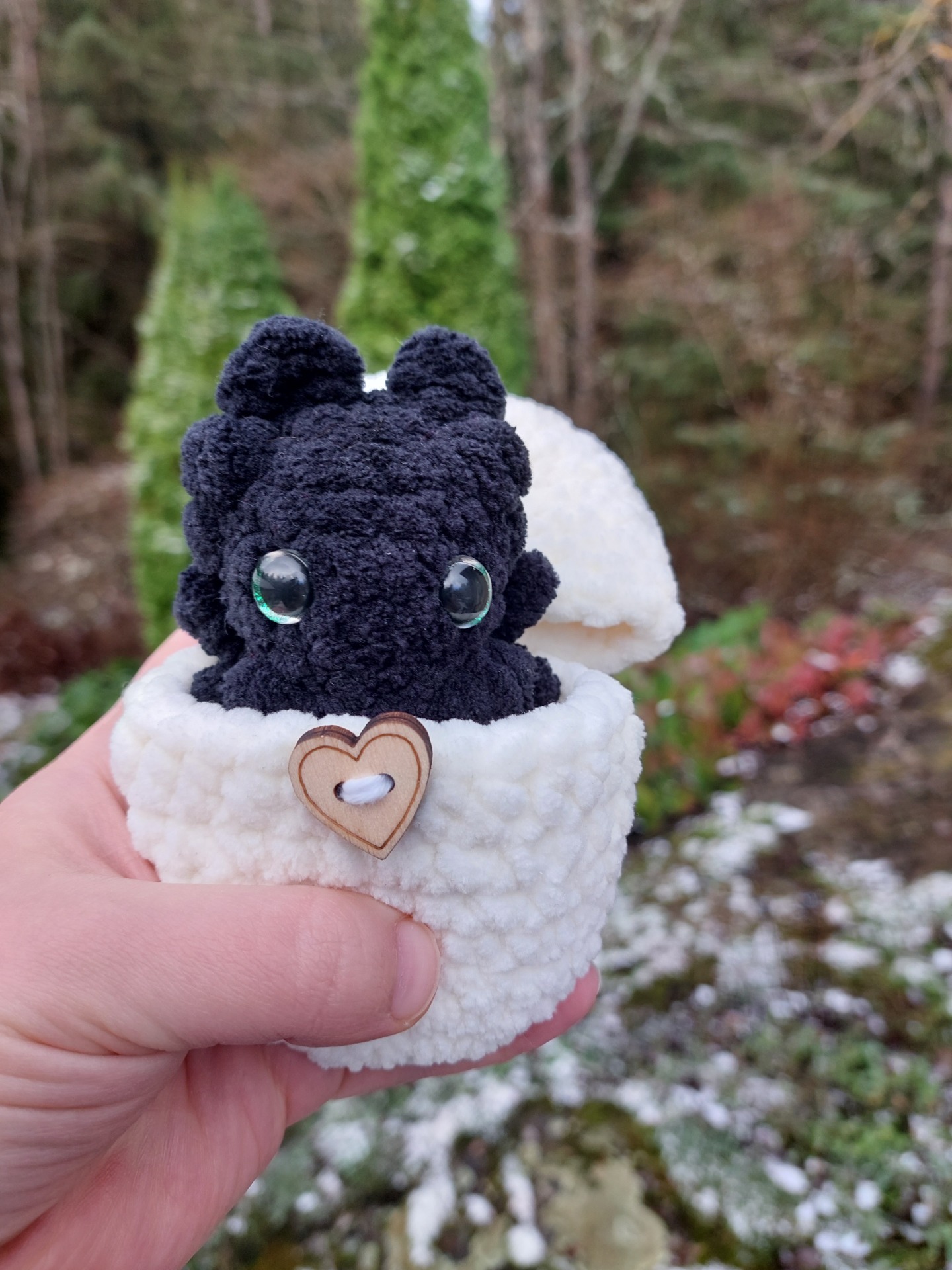 Pehmeä lohikäärme pehmolelu jonka voi laittaa munan sisälle ja ottaa pois.
