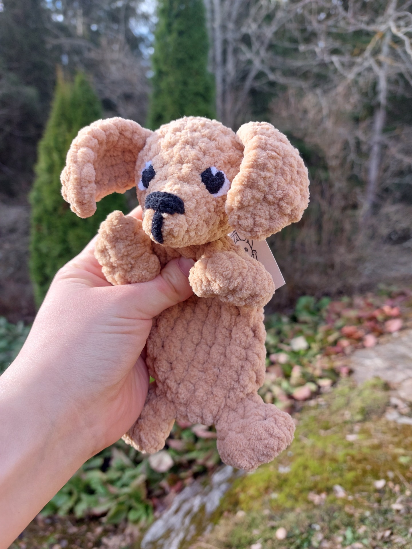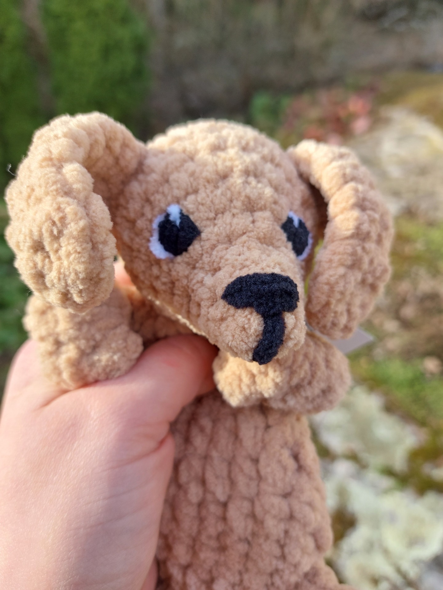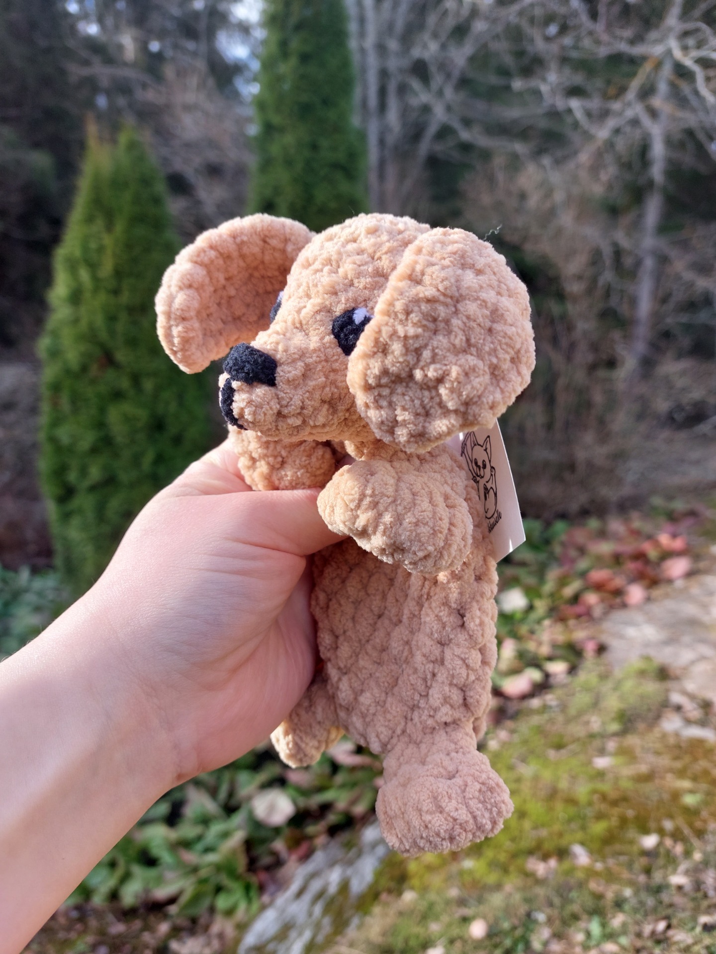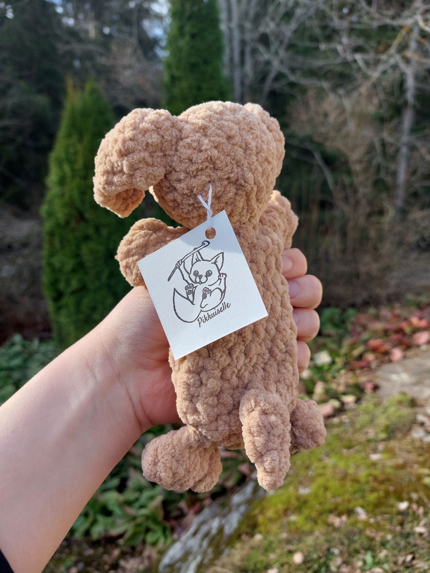 Ihanan pehmeä vaaleanruskea mäyräkoira uniriepu. Langalla on Oeko-tex sertifikaatti ja täytevanu soveltuu myös allergikoille. Kaikissa Pikkuiselle unirievuissa on vauvoille turvalliset lankasilmät.