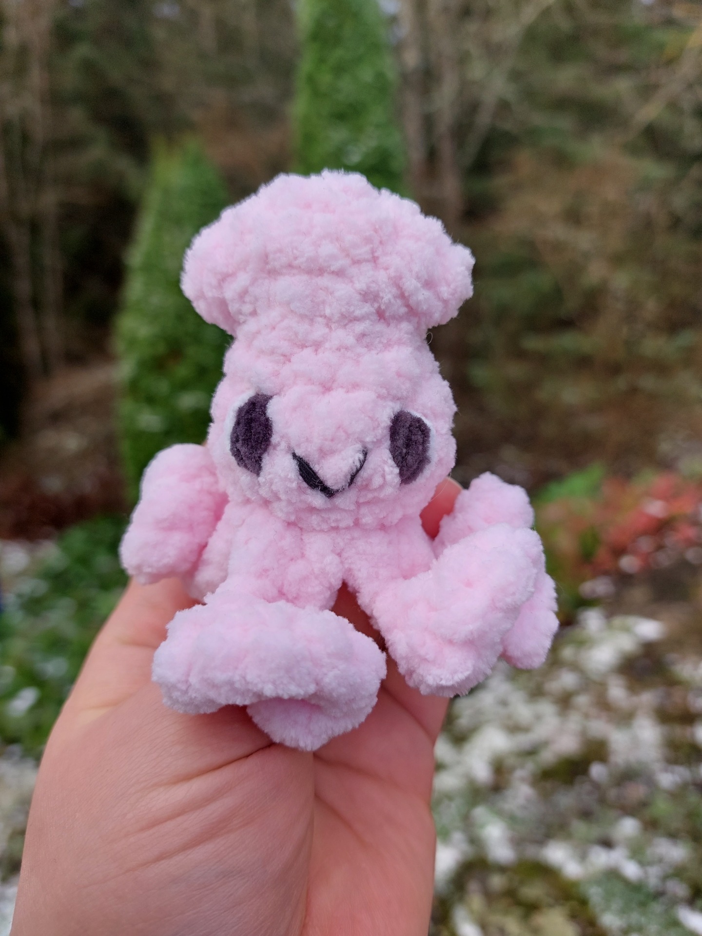 Ihanan pehmeä vaaleanpunainen kalmari pehmolelu. Langalla on Oeko-tex sertifikaatti ja täytevanu soveltuu myös allergikoille. Kalmarilla on myös turvalliset lankasilmät joten se sopii hyvin myös vauvoille.