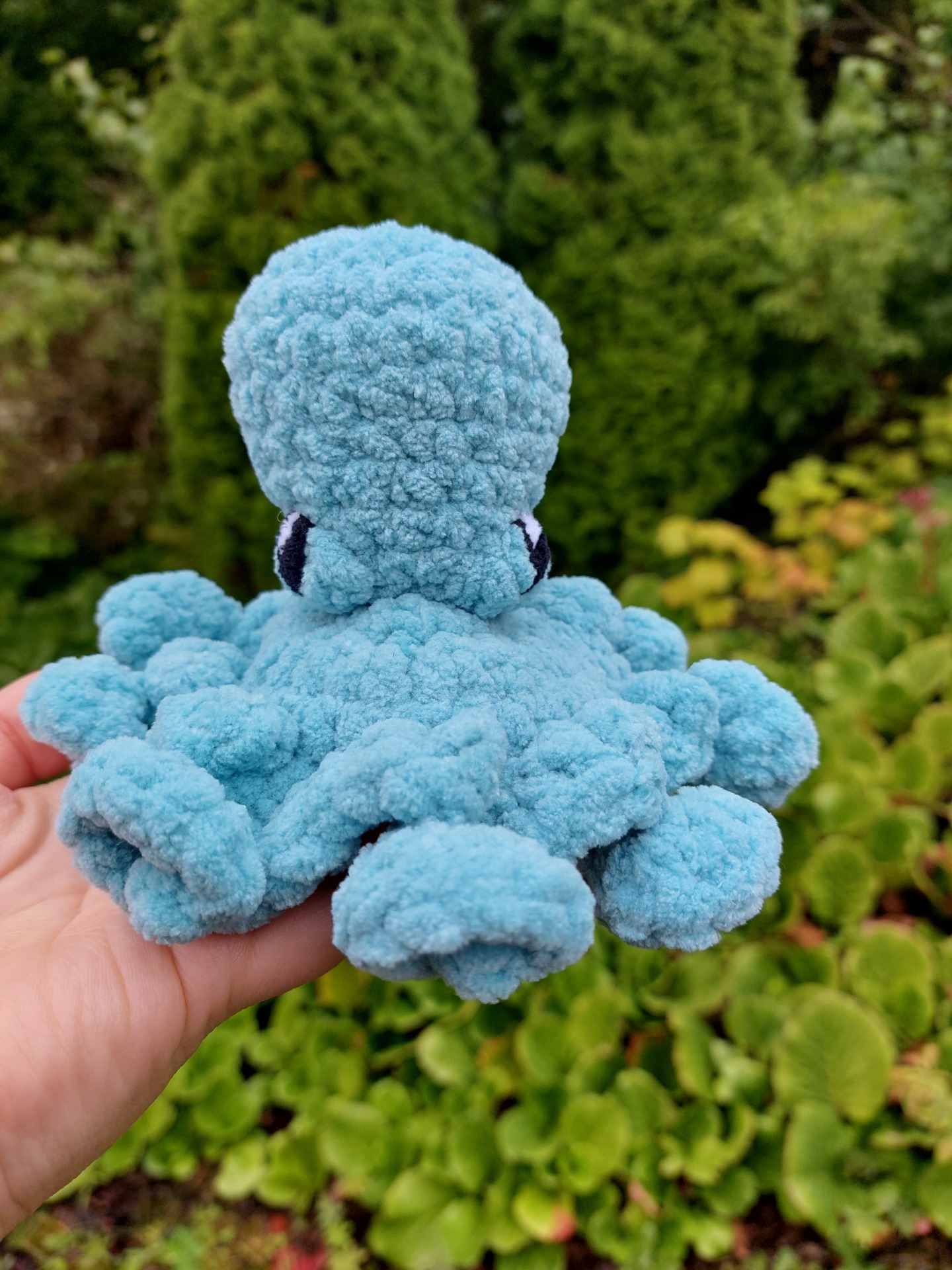 Ihanan pehmeä sinivihreä mustekala pehmolelu. Langalla on Oeko-tex sertifikaatti ja täytevanu soveltuu myös allergikoille. Mustekalalla on myös turvalliset lankasilmät joten se sopii hyvin myös vauvoille.