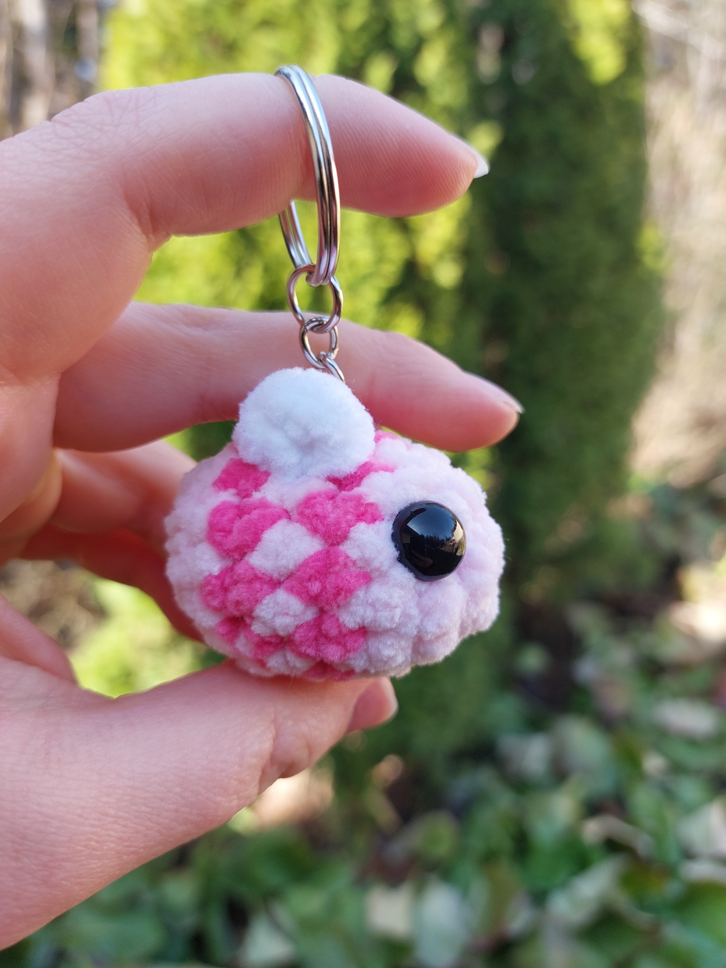 vaaleanpunainen amppari avaimenperä